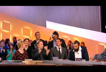 Quatre Bleus et leur entraîneur sur le plateau du Grand Journal de Canal +, ce n’est pas tous les jours. C’est même seulement pour le Grand Chelem ; ça tombe bien, les français viennent de le remporter ! Michel Denisot, ancien président du PSG, a rebaptisé pour l’occasion Harinordoquy, Imarol. Toujours est-il qu’ils avaient de l’allure nos internationaux, une sorte de version à quatre du « Bon de la Brute et du Truand » : François Trinh-Duc et Imanol Harinordoquy jouaient les beaux gosses, Lionel Nallet les brutes à grosses voix et Sébastien Chabal dans le rôle de… Sébastien Chabal, désormais aussi à l’aise qu’un présentateur du 20-Heures sur les plateaux télé ! La preuve en 15 minutes d’emission ! Fabrice Luchini, invité dans l’émission pour la sortie d’un film, a bien sûr fait le show à leurs côtés. C’est même l’intérêt majeur de l’émission, les délires nébuleux du comédien sur le rugby. Sans oublier un sauvetage magistral sur François Trinh-Duc que Michel Denisot tentait de lancer sur un terrain très glissant ! Merci Fabrice.
