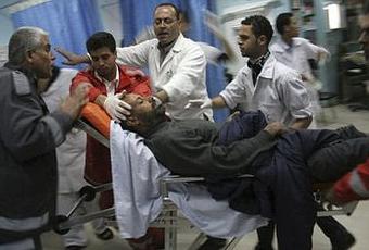 Un Palestinien, blessé par les troupes israéliennes, est transporté à l'hôpital des Martyrs Al-Aqsa, à Deir al-Balah, dans le centre de la bande de Gaza, le 22 mars 2010.