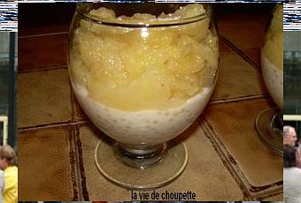 Mettre au fond de la verrine les perles du Japon, posez la compote par-dessus et saupoudrez de noix de coco râpée.
