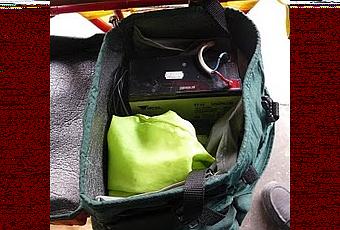 la batterie vient dans la sacoche elle n'est pas grande cela me laisse de la place pour mettre mes affaires