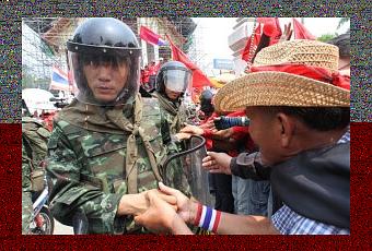 Des camions chargés de soldats ont donc quitté les campements de Wat Bowon Niwet, Wat Tri Thotsathep, Wat Makut Kasat, Wat Kae Nang Loeng, Wat Sommanat, de l’hippodrome Nang Loeng, du zoo de Dusit et de l’École de Commerce Pranakon, sous les applaudissements d’une foule de chemises rouges.