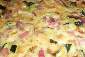 Coupez en dés les courgettes et le jambon . Faites revenir les courgettes dans une poële avec un peu d'huile jusqu'à ce qu'elles soient tendres .