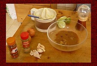 Prenez deux citrons verts. Si vous n'avez que des citrons verts européens, durs comme une couille de première-ligne toulousain, passez les 15 secondes au micro-ondes, sur une assiette (c'est une super-astuce de super-cuisinier). Pressez-les, et versez le jus et la pulpe dans un saladier. Ajoutez du poivre, du piment moulu, du gingembre moulu, deux-trois clous de girofle, et lésinez pas sur les quantités. Si vous vous sentez d'humeur provençale, ajoutez un peu de romarrrring, du laurrrrier en poudrrreu, ung peutit peu de bouquet garni, ça fera chanter les cigales dans la jungle amazonienne, cong.