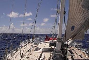 Sous génois et grand voile haute, le vent s'est enfin décidé à s'orienter au Nord Est et souffle à 14 nœuds. De quoi avancer à bonne allure, au grand largue à 10 nœuds pour parcourir les 200 derniers milles nautiques.