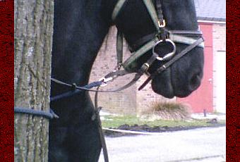 Ce beau équidé attaché à un arbre me montre sa belle face.