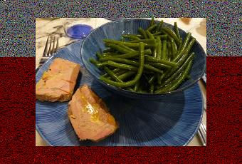 Lundi, plaisir festif avec du foie gras accompagné d'haricots verts. Des haricots verts croquants et du foie gras de canard à l'Armagnac, absolument succulent, parfaitement assaisonné, un régal. Il faut dire qu'il était en provenance directe du Périgord et réalisée par une spécialiste en la matière, ma collègue sophrologue-nutritionniste Françoise Surot, qui propose des stages "Manger mieux manger moins" dans le Périgord. Dans ces stages, on apprend justement à faire (et bien sûr déguster) du foie gras et se rendre compte que si on le mange avec attention, en conscience, en le savourant pleinement, on en mange finalement peu pour avoir un grand plaisir gustatif. Il n'y a donc aucune raison de se priver de ce type d'aliments, ils ne feront pas prendre de poids.