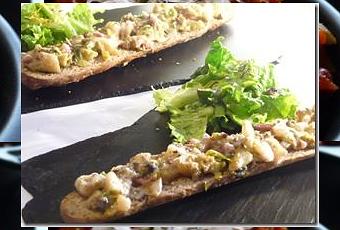 Couper votre baguette dans le sens de la longueur, étaler la préparation sur les 2 moitiés, saupoudrer de fromage et mettre au four pendant 5 min.