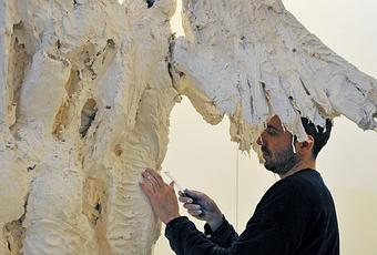 Montage de “sans titre”, installation de sculptures initialement montrée dans la grotte du Mas d’Azil (09) et représentée aux Abattoirs dans une nouvelle configuration dans le cadre de l’exposition “10 ans. un musée, un Frac, une collection”.