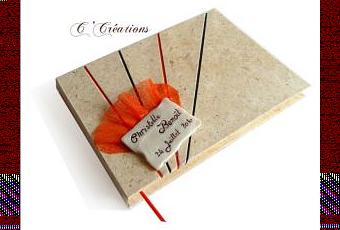 Un papier naturel ivoire, de fins filets orange et chocolat pour être assortis à leurs faire-parts.