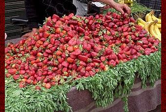 FMG © 2010Les souks de Marrakech sont un véritable labyrinthe multicolore. On y croise des fraises appétissantes, mais aussi d'autres fruits succulents.