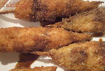 * Sortir les brochettes de l'huile et les disposer sur un papier absorbant afin d'éliminer le surplus de gras. * Servir avec une Sauce Yakitori du commerce ou maison comme ci-dessous et déguster avec les doigts.