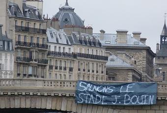Bravo d'abord au collectif Jean Bouin et à la dynamique Agnès Popelin pour son bâchage des ponts qui a subi l'assaut d'individus mal intentionnés : voici ici et là d'autres clichés à envoyer en cartes postales à Delanoë et Guazzini pour leurs anniversaires.