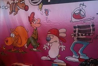 Décidément, ce blog devient un album-photo à lui tout seul. Il faut dire que je n'ai guère le temps de dessiner pour m'amuser. Voici donc une photo de plus, celle prise par Sti au salon du livre de Paris. C'est évidemment au stand des éditions Paquet et ça fait tout drôle de voir ses dessins en grand.