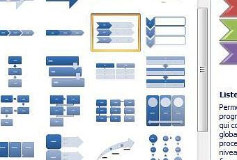 Lancer Power Point et dans le menu Insertion, sélectionner SmartArt. Dans la catégorie Processus , je choisis la liste à chevrons.