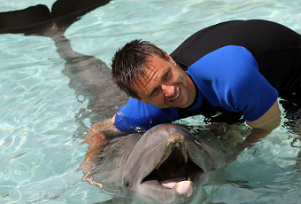 Robin Soderling avec un dauphin au Seaquarium de Miami