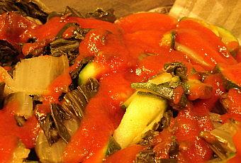 Découper les courgettes en rondelles et les déposer sur les blettes