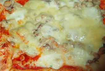 Étaler au centre du coulis de tomates, puis les champignons. Émincer votre courgettes en rondelles, ajouter la sur la pizza, parsemer de gruyère râpé.