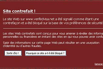 - La protection qu'offre Firefox qui empêche l'affichage de la page en avertissant qu'il s'agit d'une page contrefaite