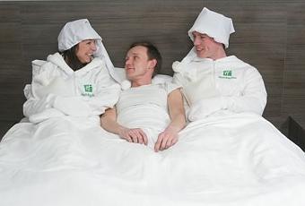 Et oui, dans trois Holidays Inn britanniques (deux à Londres et un à Manchester), la chaîne vient de mettre à l’essai un service révolutionnaire : des bouillottes humaines ! Des hommes et des femmes en grenouillères blanches sont à votre disposition pour venir chauffer votre lit 10 minutes avant que vous ayez décidé de vous y glisser…
