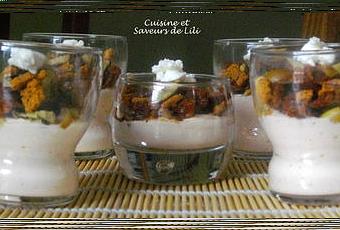 Répartir le fromage dans les verrines, ajouter une partie des olives et les tomates confites, parsemer avec les biscuits concassés et déposer quelques olives sur le dessus.