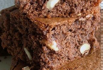 En fait c'est un brownie... raté ! J'aurais préféré un texture plus dense et fondante mais j'ai obtenu du gonflé moelleux. Mais la forme est carrée, il se tient très bien et se découpe très facilement en parts, donc je lui donne quand même le titre de "brownie". De plus, le succès au moment du service m'a très vite consolée : "c'est un de tes meilleurs gâteaux maman !!!".