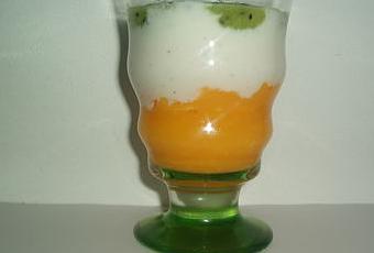 Réfrigérer au moins une heure avant de déguster, au dernier moment, ciseler la menthe, et parsemer en le dessus de la verrine.