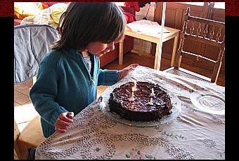 Avec un gros gâteau au chocolat fait par sa maman, comme il se doit.