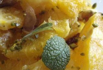 Concassez les pignons de pin et les pistaches. Coupez en lamelle la menthe. Réservez. Au moment de servir, rajoutez tout.