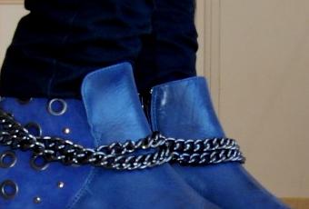 la grosse ou grande interrogation du jour... enfin du week end puisqu'elles sont chez moi depuis vendredi soir concerne ces boots Coline pour André...dès que je les ai vues pour la présentation de la collection sur leurs différents blogs j'ai adoré ce modèle c'est de loin mon préféré... après est venu le choix de la couleur ça n'a pas été facile mais par élimination j'ai choisi les bleues! le noir fait trop hiver et le camel je viens d'avoir les boots liberty donc le bleu était le choix le plus judicieux au niveau de mon shoesing...je les ai reçues vendredi et aucune déception à l'ouverture de la boîte elles sont carrément superbes!!!! sur ce je pars en week end en les laissant chez moi et le doute commence: avec quoi vais-je les porter???du coup à peine rentrée chez moi ce matin je me suis dit qu'il fallait que je vous les montre pour avoir votre avis parce que je ne suis pas sûre à 100% que ce soit mon style... niveau tenue j'ai choisi ma tenue préférée du moment c'est-à-dire une tenue qui me correspond totalement afin de voir si elles vont ou non trouver leur place chez moi...alors à vos avis soyez franches parce que j'ai vraiment besoin d'avis objectifs je ne voudrais pas me tromper!!!