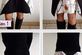 Je pense la porter avec les pans plutôt sur le devant, côté noir pour le moment et côté fleurs pour le plein été!
