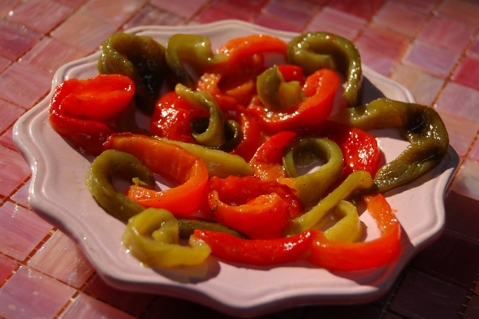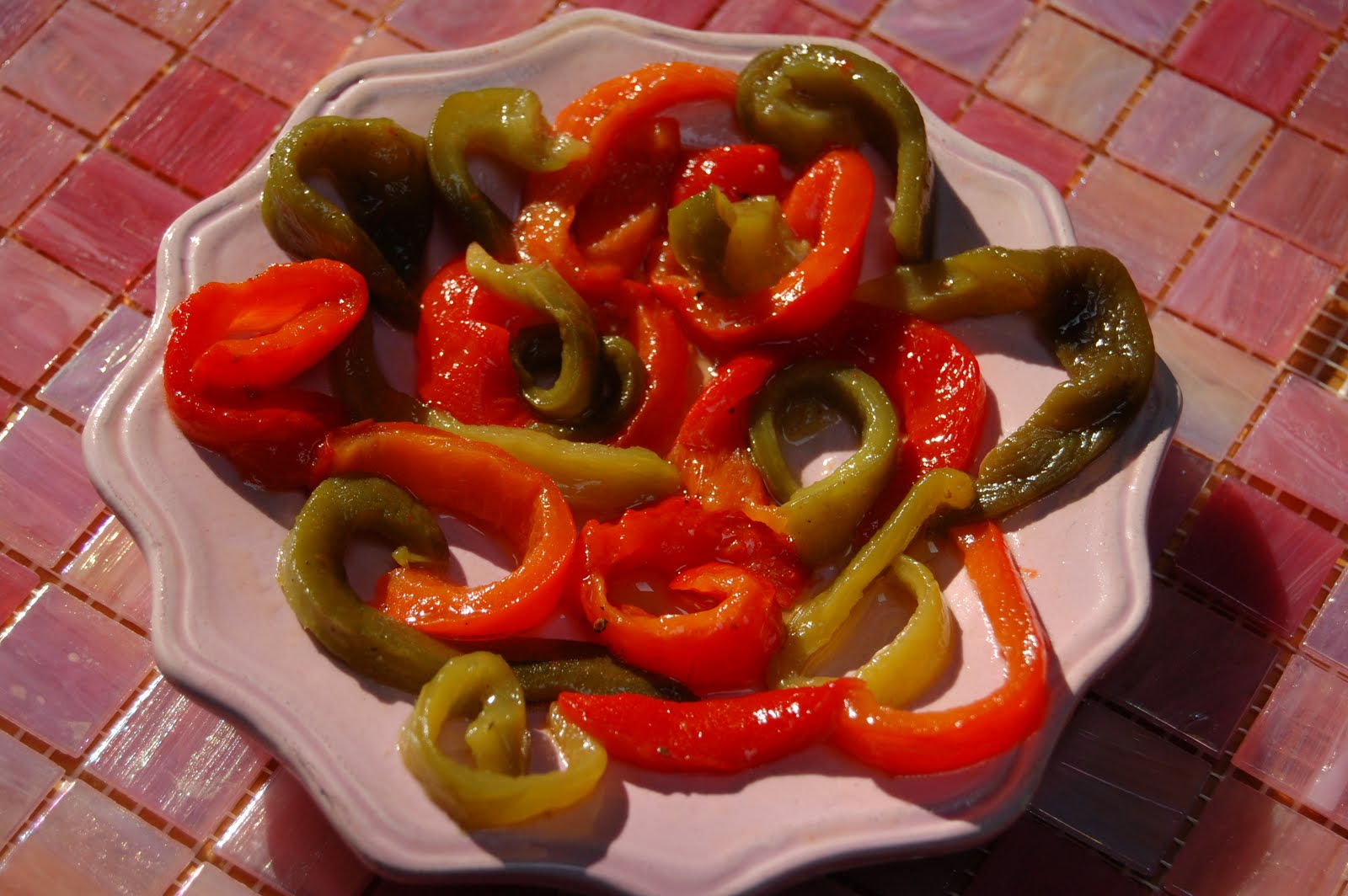 Préparation:Au Maroc, on fait griller les poivrons sur la flamme du gaz. Les poivrons deviennent noirs et on enlève la peau ensuite, le petit goût que laisse la flamme est délicieux et typique.Moi, je n'ai pas le courage de le faire car c'est contraignant (cela salit la gazinière, il faut surveiller de prêt...). Je les met au four position Grill sur un papier aluminium. Je les lave puis les coupe en deux et les dispose face bombée vers le grill. Attention qu'ils soient grillés mais pas trop. Ensuite, je les mets dans un sac plastique fermé pendant plusieurs minutes. Puis je les passe sous l'eau, la peau se détache très facilement. Je les coupe naturellement avec les doigts et les dispose dans un plat. Je les sale, je mets un généreux filet d'huile d'olive forte. Poivre et cumin et aïl, si on aime...Depuis que j'ai ma friteuse light, sans huile! je les mets dedans lavés, épépinés et coupés en deux pendant une vingtaine de minutes puis je passe à l'opération sac plastique, ect...