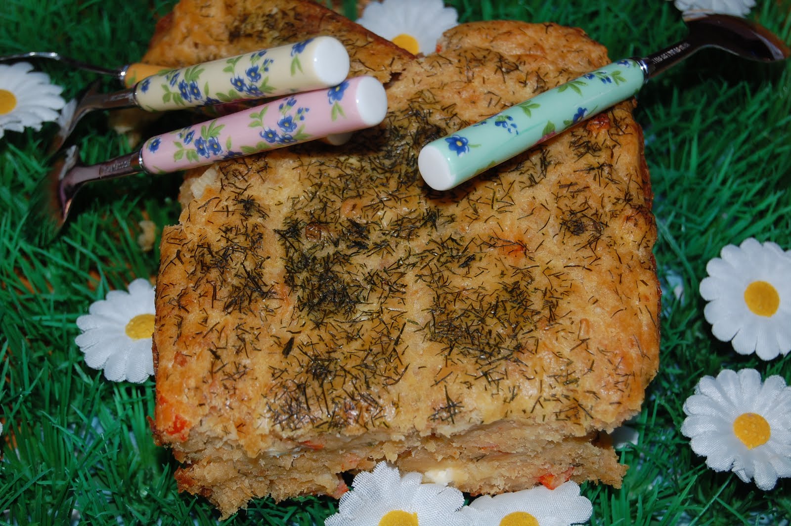 J'ai insisté sur l'aneth sur le dessus (mais dans le dedans aussi, cela donne un petit goût sucré qui se marie bien avec le saumon). Pour être bon, le cake se mange chaud! A notre goût...