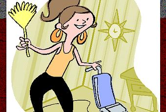 Je ne suis pas une ''femme d'extérieur'' mais ce n'est rien comparé à l'intérieur! OMG! Le bruit de l'aspirateur m'exaspère. Juste l'idée de repeindre une pièce me donne une poussée d'urticaire. J'apprécie le résultat mais je ne peux supporter le passage obligé des travaux. Je n'ai jamais utilisé mon aspirateur central (incroyable mais vrai!). Ma penderie croule sous les serviettes roulées en boules et les débarbouillettes empilée à la va-comme-je-te-pousse (c.à-d. placées en tas instable). J'ai d'autres belles qualités mais pas celles d'aspirer, d'astiquer et de frotter. Tout cela m'ennuie au plus haut point. Contrairement à l'heureuse ménagère de l'illustration, un plumeau ne vient pas avec un sourire. Et je ne danse jamais la cha-cha avec un balais à tapis!