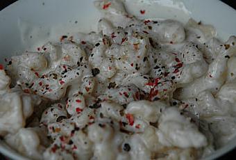 Faire chauffer doucement la crème et le roquefort émietté. Ajouter les 2 poivres une fois le fromage fondu.