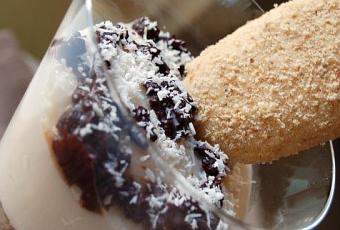 Le flan à la noix de coco, je ne pouvais le concevoir autrement que dans une verrine avec un fond de biscuits vegan émiettés, recouvert d’une fine ganache et parsemé de noix de coco râpée. Et pour rappeler le fond de verrine, un biscuit légèrement enfoncé. Le Gourmand’Riz Noix de coco peu sucré apporte une délicieuse saveur en bouche, laissant les papilles se délecter de son parfum envoûtant. De quoi savourer cette délicieuse nouveauté avec les meilleures saveurs qui pouvaient l’accompagner !