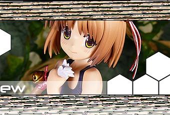 La demoiselle nous est donc présentée sur une base original, en forme de trèfle à quatre feuille (surement en rapport avec la série). Nous la retrouvons dans une maillot de bain scolaire, avec une paire d'oreille de chat. Un trip japonais assez loufoque je dois l'avouer. Nono adopte une pose génée, et le fait que sa main tire son maillot renforce cette idée (en plus de l'expression de son visage).