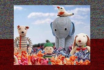 Objets décoratifs en crochet de coton « Mix Strip » de la jeune créatrice Anne-Claire Petit : ballon de football Coupe du Monde 2010 en noir ou rouge, 67 €, ours Teddy, 39 €, tourne-disque rétro, 114 €, vase tulipes en crochet de coton biologique, 65 € en 23 cm et plaid XL crochet de coton biologique, 489 € en 140 x 180 cm (www.anneclairepetit.nl).