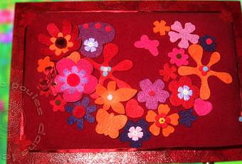 Delphine cherchait désespérément un moyen de ranger ses 50 bagues, alors voilà, elle m'a passé commande et voilà un grand présentoir à bagues servietté, tapissé avec un léger rembourrage, et décoré en relief. Un travail très plaisant à faire, merci Delphine pour ta confiance.