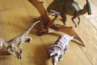 les derniers arrivés: oviraptor, ptéranodon (est-ce que ce reptile volant est vraiment un dinosaure ?), parasaurolophus (ou para-zorro-lophus en mnémotechnie) et tricératops