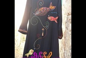 Voici un manteau de curé, un vrai, très austère, évidemment ! Et le voici revisité par ma soeur, Françoise Bazin, peintre, créatrice de chapeaux, "relookeuse" de vêtements...