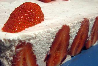 On peut aussi couler sur le dessus du gâteau un reste de purée de fraises sucré dans lequel on aura incorporé 1/2 feuille de gélatine ou bien de la gelée de fruits rouges qu'on aura fait