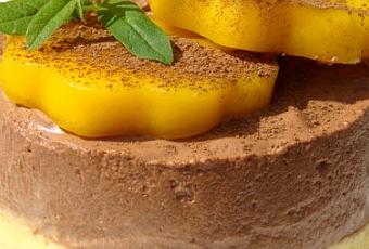 Recette extraite d’un hors-série de Cuisine Actuelle. Un très bon dessert qui allie trois saveurs et textures. Il est composé d’une base pralinée croustillante, puis d’une crème à la mangue et d’une mousse chocolat/chantilly.