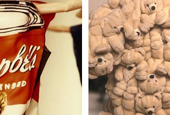 Exposition Arts Décoratifs: Histoire idéale de la mode contemporaine. De gauche à droite: Jean-Charles de Castelbajac, défilé prêt-à-porter, printemps-été 1984 et Jean-Charles de Castelbajac, prêt-à-porter automne-hiver 1988. Source:www.lesartsdecoratifs.fr