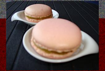 -Faire chauffer 150g de chocolat blanc au bain-marie, et porter 12cl de crème fraîche à ébullition avec 50g de pâte de pistache et 50g de sucre glace.