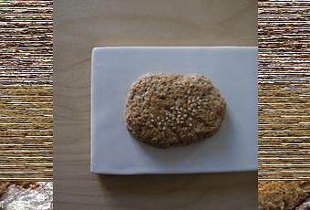 Le lendemain, le découper en tranches, les mettre sur du papier sulfurisé, saupoudré de sésame.