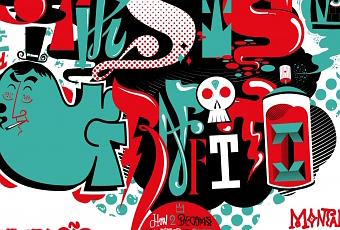 Sur son website on capte que le mecton a de nombreuses flêches dans son carquois, entre aplats travaillé, typographie tripé, compositions intéressantes, il mélange post-graffiti, corporate et illustration à l’ancienne tout cela remis a la sauce 2010.