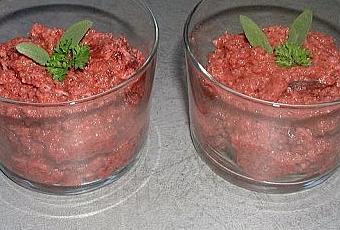 Déposer dans des verrines, décorer avec des feuilles d'herbes aromatiques (sauge et persil chez moi) et réserver au frais.