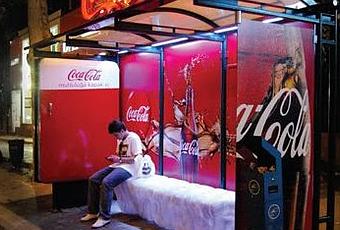 Coca Cola fait une nouvelle fois preuve de créativité avec cette campagne Open Happiness, en rendant l'attente du bus moins longue pour ses usagers grâce à cet habillage interactif. En effet, de vraies bouteilles de Coca Cola fraiches ont été disposées dans les panneaux latéraux de l'abribus, laissant la liberté aux usagers la possibilité de déguster le nectar sucré en attendant leur transport.