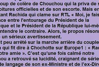 Avec le Ministère de la Justice, Madame la Garde des Sceaux a connu de très nombreux et de très sulfureux dossiers. Autant dire que les bonnes Affaires, elle connait ! Chouchou s’est beaucoup énervé contre elle mais a dû faire marche arrière en déclarant – via Chochotte – que finalement Rachida restait sa bonne copine.