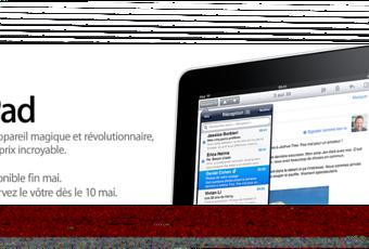 Avec 2 mois de retard au total, l’iPad commence sérieusement à se faire attendre. Mise à jour de la page d’accueil, l’iPad ne sera pas disponible fin avril mais fin mai ! Une nouvelle date qui en énervera plus d’un sachant que les réservations de débuteront que le 10 mai. En ce qui concerne le prix, rien de neuf, comme d’habitude.